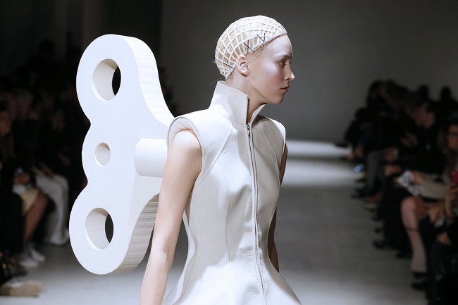 A model presents a creation by Gareth Pugh during the 2014/2015 Autumn/Winter collection fashion show in Paris. (Patrick Kovarik/Getty Images)